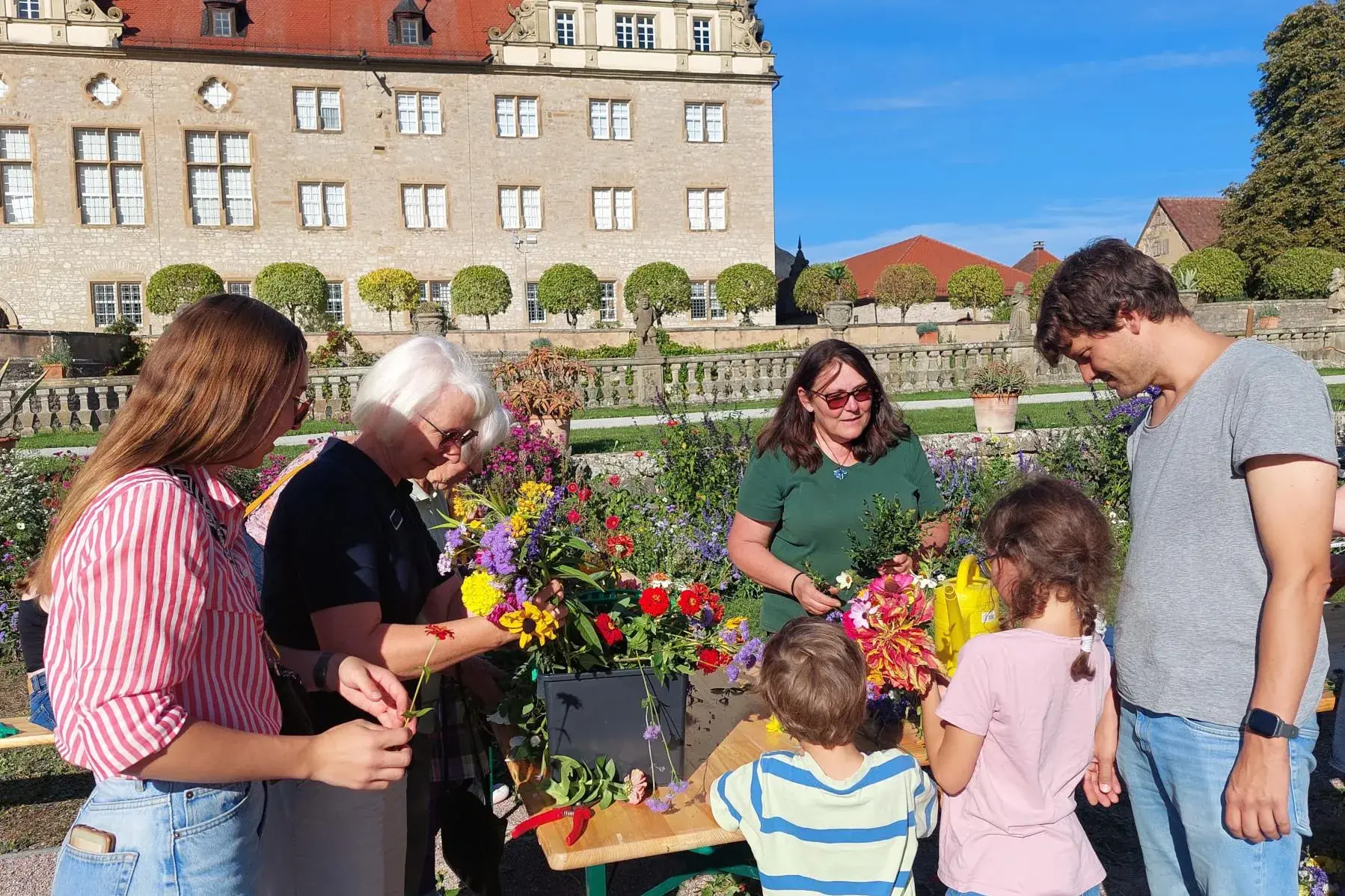 Mit dem Jahreszeitenwechsel zeigt sich auch der Schlossgarten Weikersheim in einem neuen Gewand. Die bunten Blätter schmücken die Anlage in Gold-, Rot- und Brauntönen, während die Sonne ihre letzten warmen Strahlen schickt. Um den Herbst sowohl farbenfroh wie auch kreativ willkommen zu heißen, lädt das Schlossteam Groß und Klein zum bunten Blumensträuße Binden ein. Die Blüten für ihre blumigen Kreationen dürfen die Gäste selbst im Schlossgarten schneiden. Hierfür müssen eine Gartenschere und ein Eimer mitgebracht werden.
