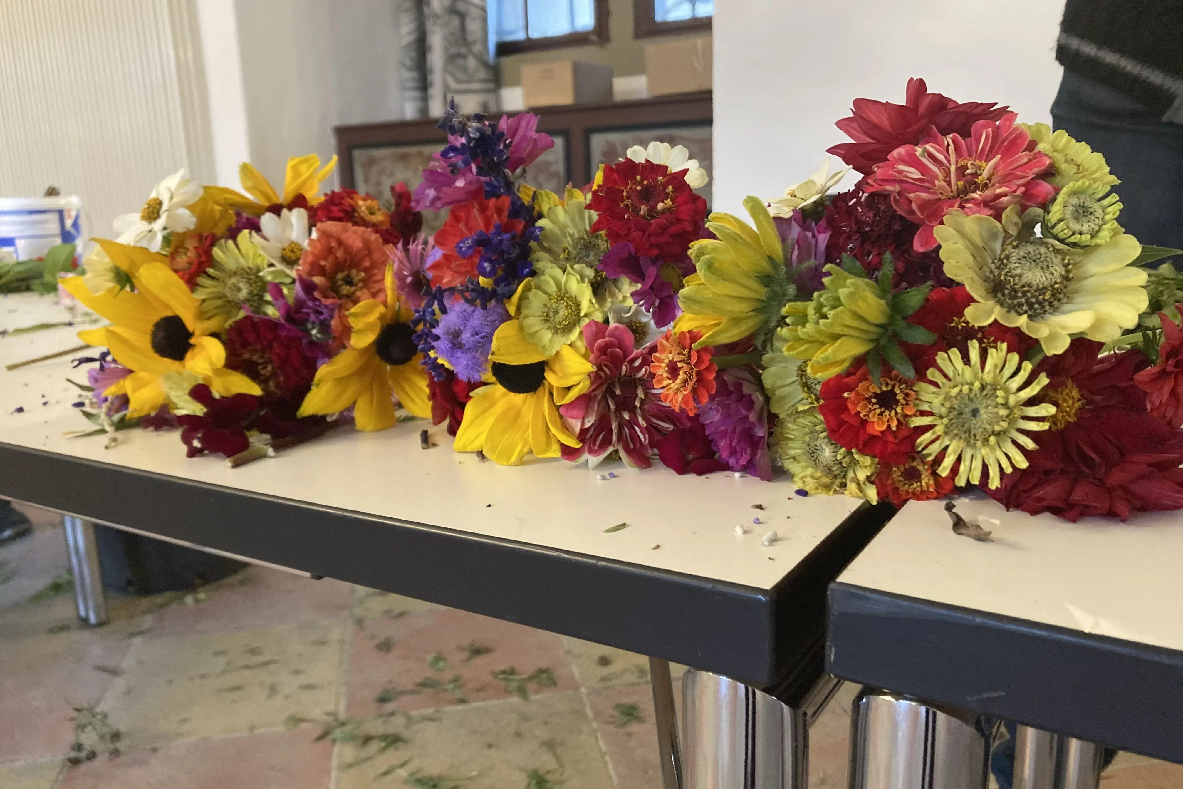 Beim Event entstehen farbenfrohe Sträuße und kreative Kunstwerke.