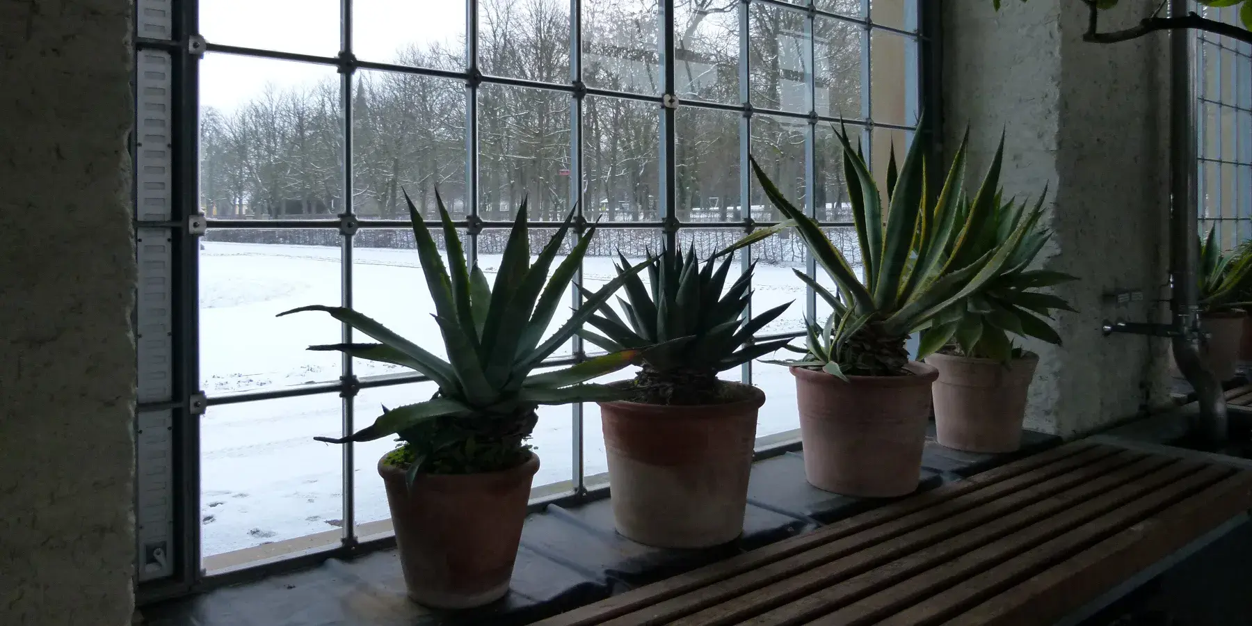 Gut vor der Kälte geschützt überwintern hier zahlreiche Kübelpflanzen.